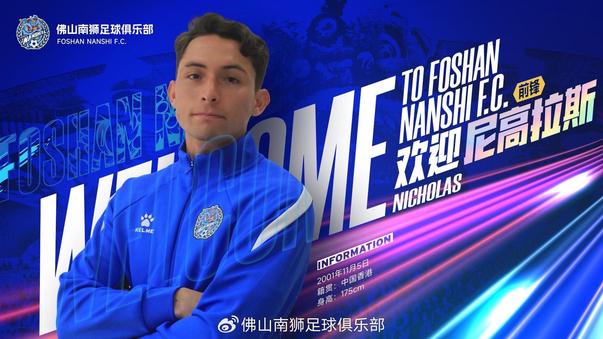 经与球员友好协商达成一致,即日起,中国香港籍球员尼高拉斯(Nicholas Benavides)正式加入佛山南狮足球俱乐部。2026赛季,他将随队征战各项赛事。